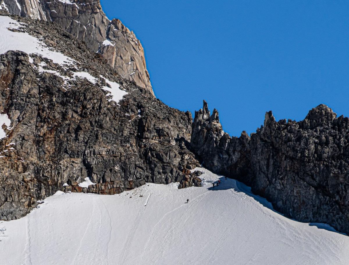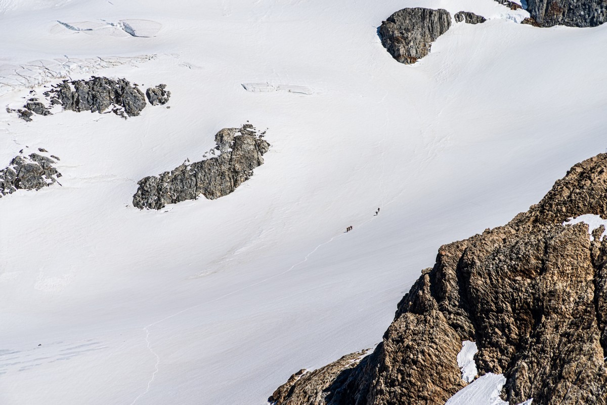 А воооон там кто-то не спеша поднимается вверх по снегом прикрытому леднику: