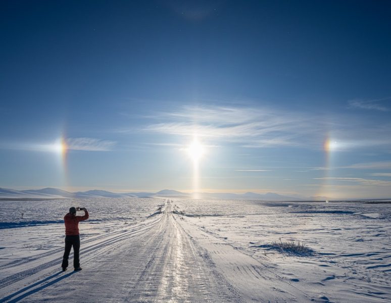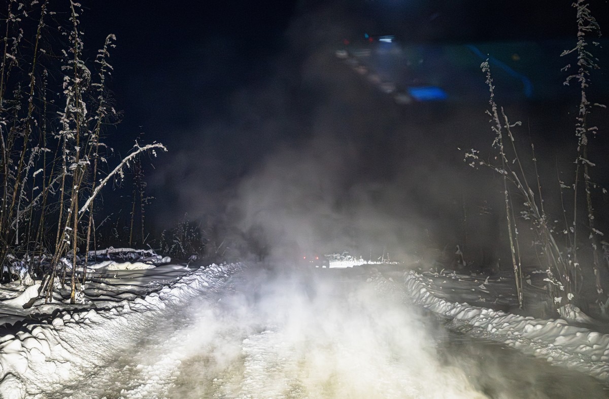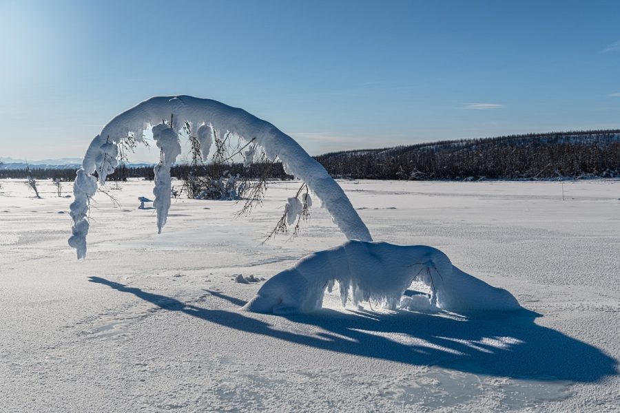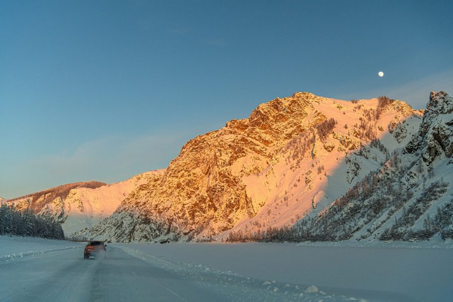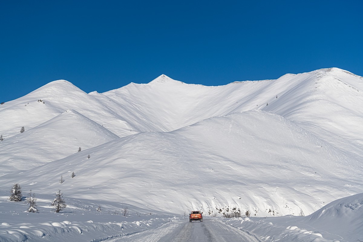 Случается, что на сотни километров нет вообще ничего — ни жилья, ни кафешек-«пикетов», ни заправок. Вообще ни-че-го. Кроме бескрайних просторов, волшебных картинок, морозной погоды, льда и снега. И это всё просто гипнотизирует и тащит тебя вперёд и вперёд…