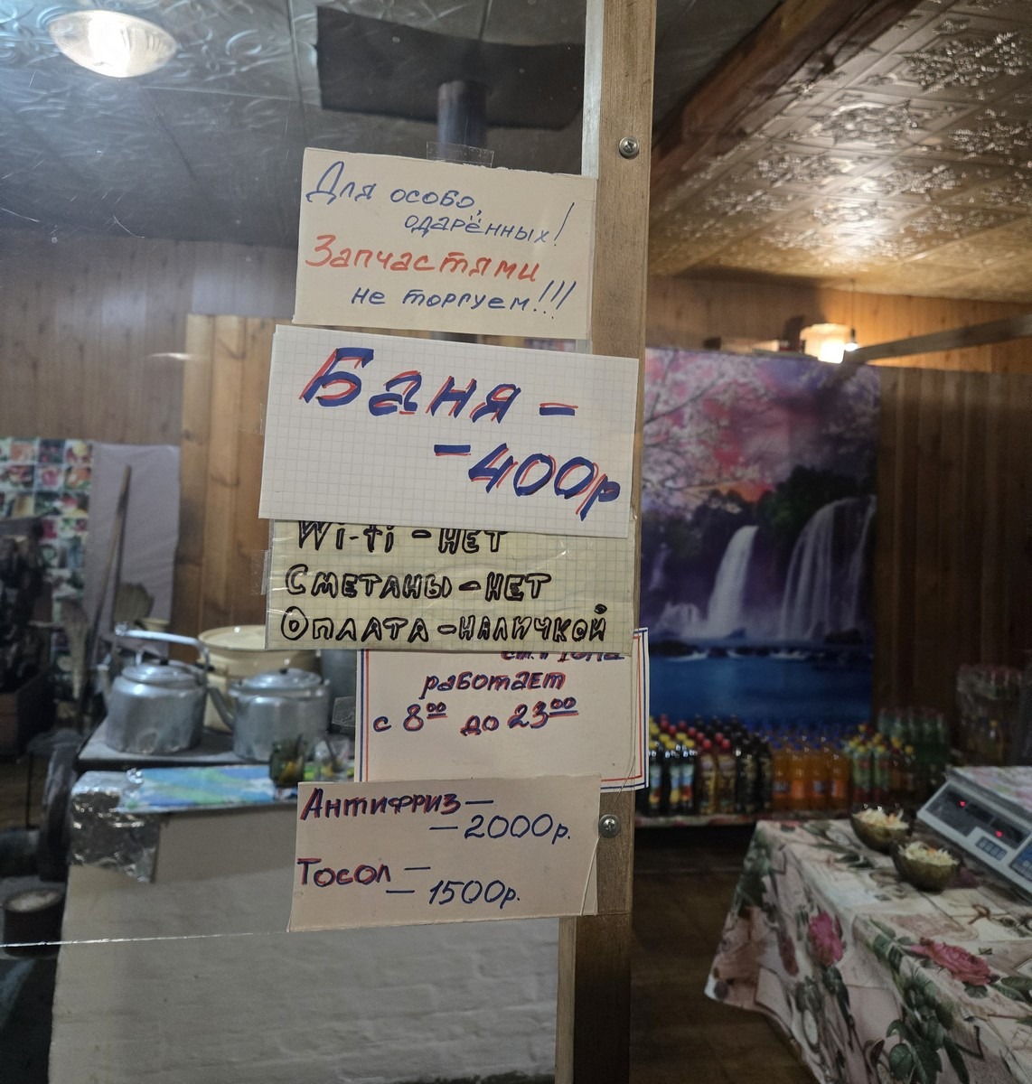 Заправки? Случаются в более-менее крупных посёлках, но нечасто и не весь ассортимент (бензин-95 — редкость). Поэтому запас горючего всегда с собой — и с избытком! Переночевать где? Дальнобои ночуют у себя в кабинах, командировочные (если есть такие) — в ведомственных общежитиях (опять же, в крупных посёлках). Для туристов здесь иногда нет никаких предложений. Либо ночуешь у себя в машине (кстати, к этому быстро привыкаешь), либо же договариваешься с поселковыми властями, которые селят тебя в школьном спортзале (школы здесь везде) или в поселковом Доме культуры (однажды даже на сцене спали!) — смотрите рассказы «Тикси-2024».