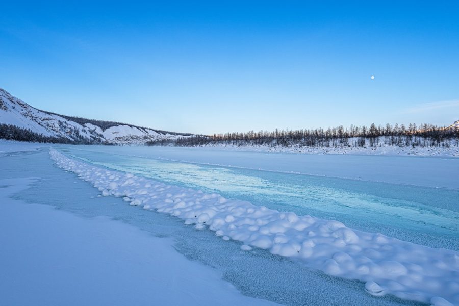 В некоторых местах вода промерзает до самого дна реки, а сверху и из притоков подпирает. Жидкая вода пробивает трещины во льду, вытекает на поверхность и свободно течёт поверх льда, по автозимнику. Бывает такое, что уровень воды, текущей по дороге (даже при окружающей температуре ниже -50°C) — более метра! Фуры иногда «по фары» в воде идут (картинки и видео в интернетах есть).
