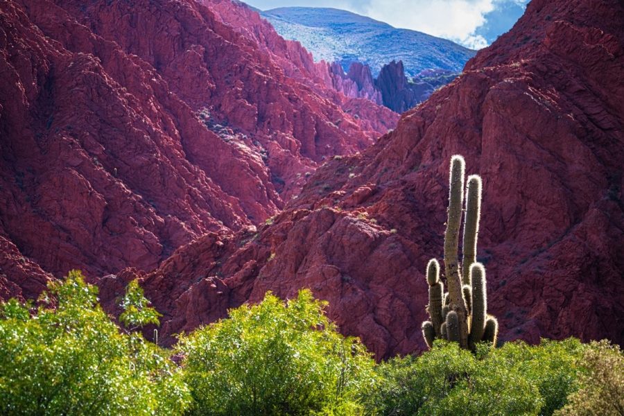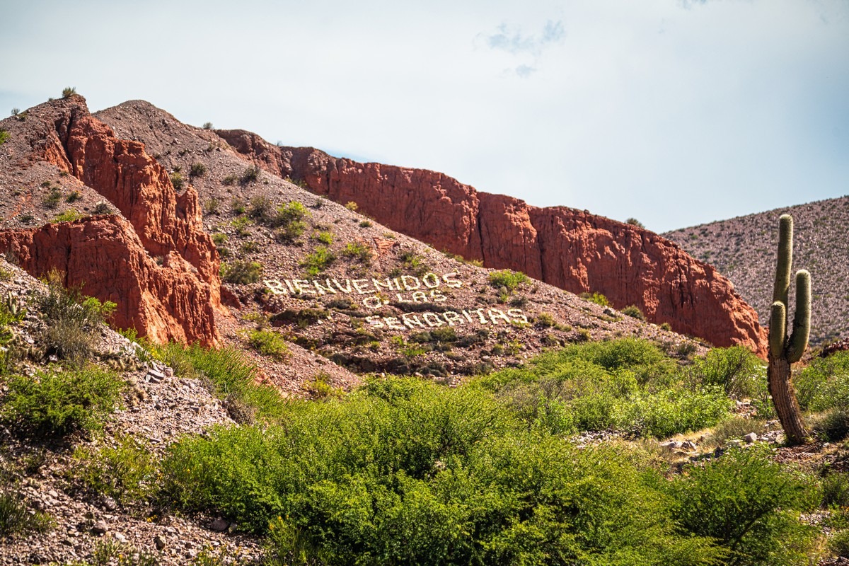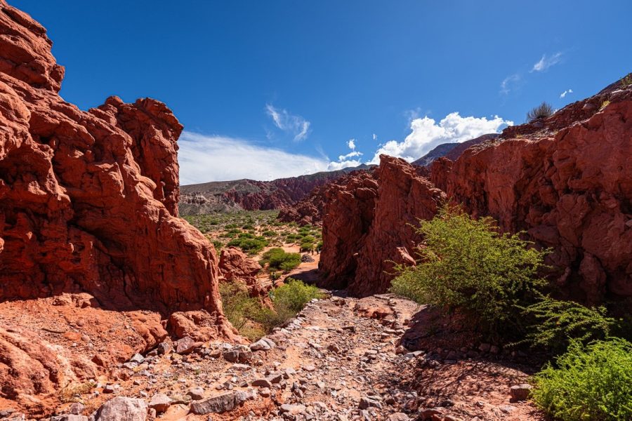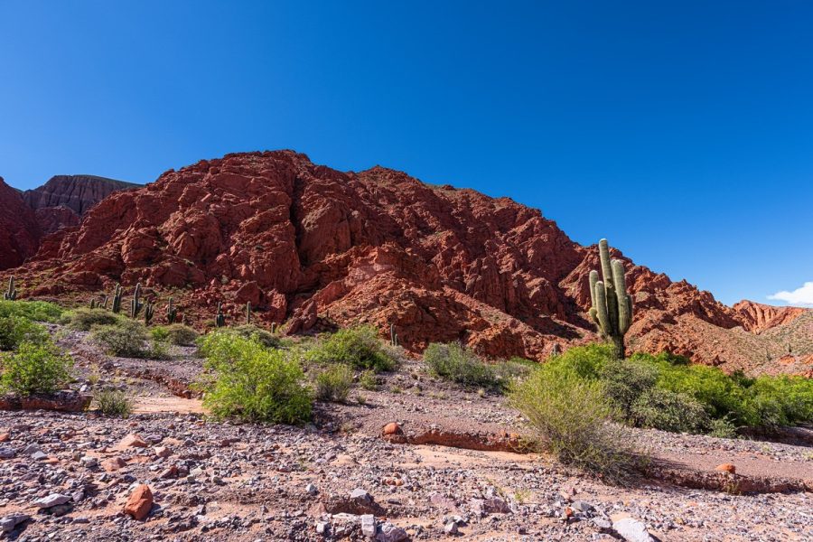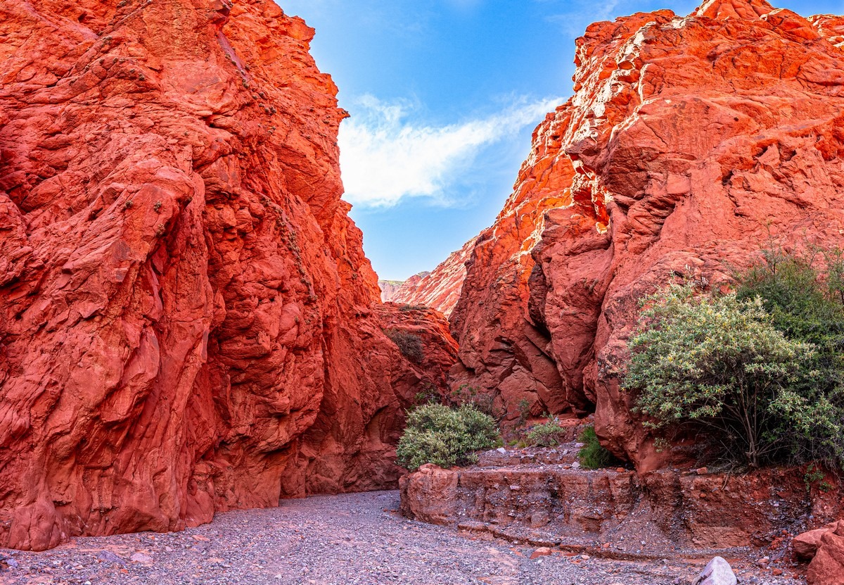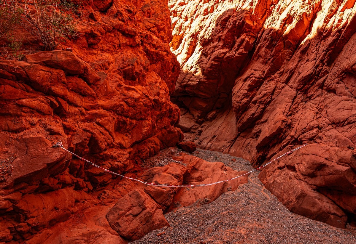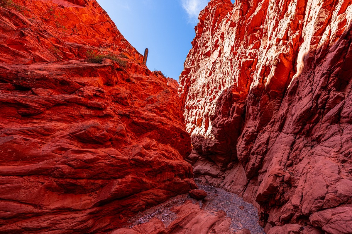 В северо-аргентинских jujuyских краях есть ещё одно разноцветное местечко, обязательное к посещению: красочная долина Quebrada de las Señoritas. Это вот здесь на гугломапсах или вот сюда на яндокартах. Яркие краски скал, выразительные кактусы, но самое примечательное: весьма необычное ярко-красное ущелье длиной около полукилометра:
