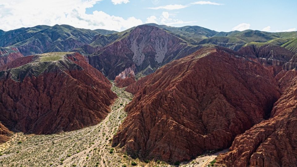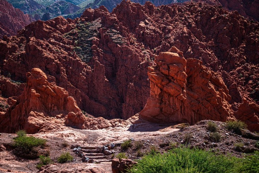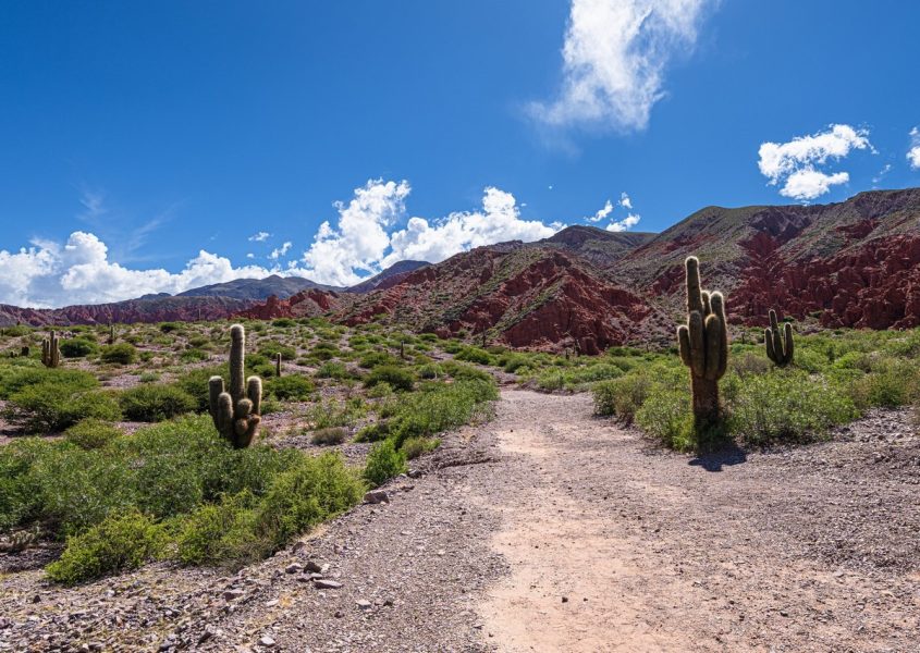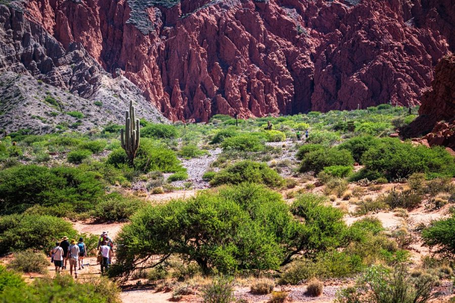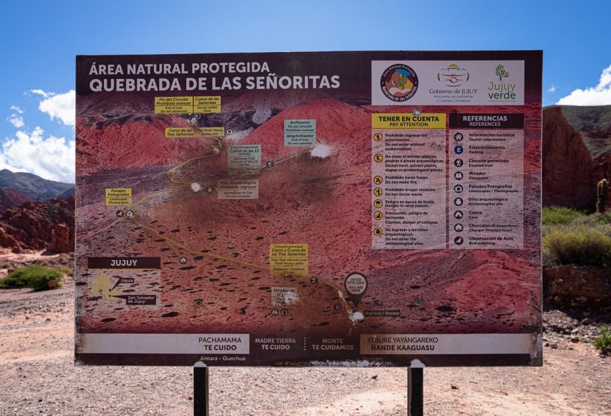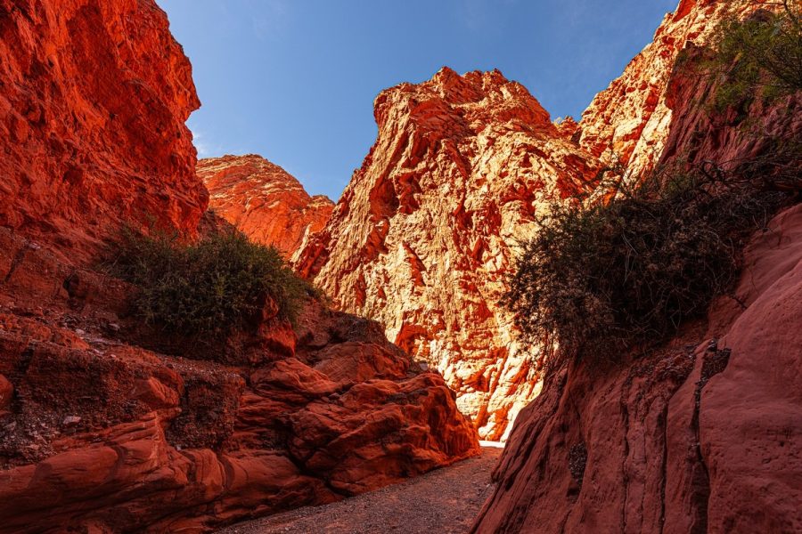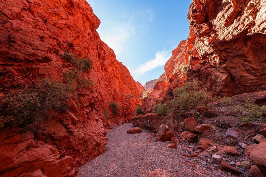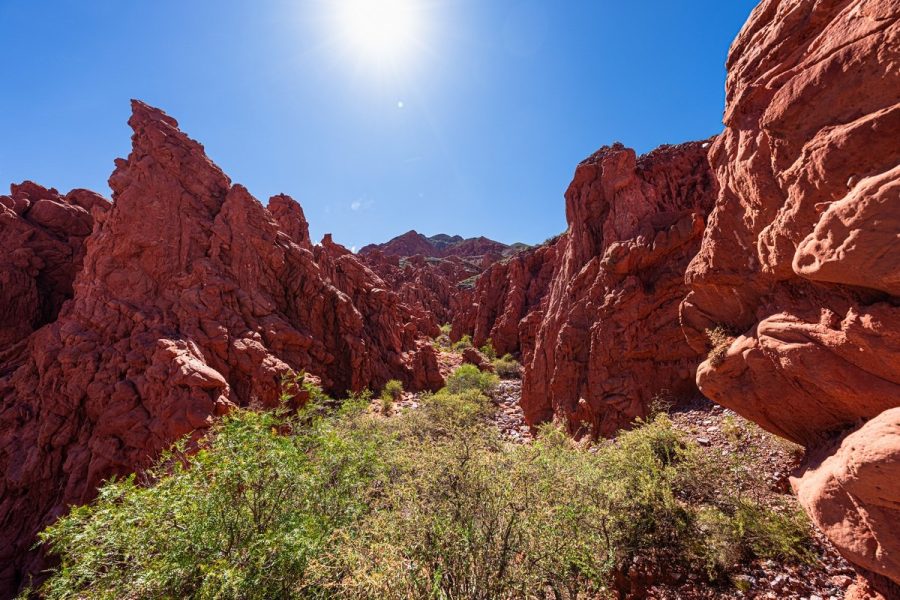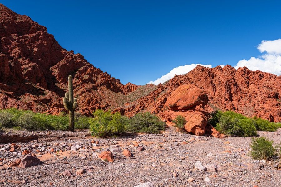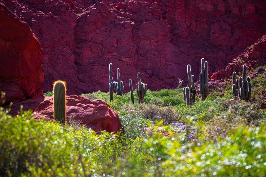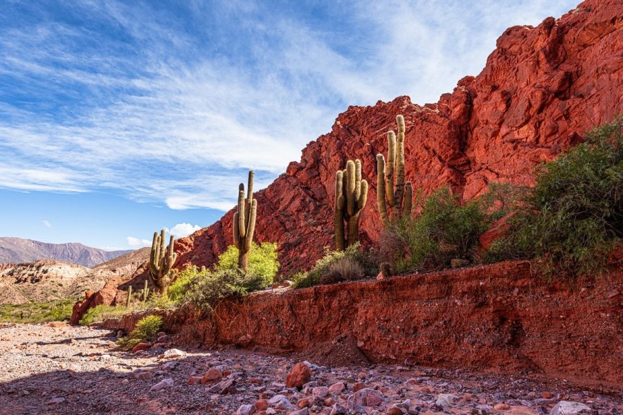 В северо-аргентинских jujuyских краях есть ещё одно разноцветное местечко, обязательное к посещению: красочная долина Quebrada de las Señoritas. Это вот здесь на гугломапсах или вот сюда на яндокартах. Яркие краски скал, выразительные кактусы, но самое примечательное: весьма необычное ярко-красное ущелье длиной около полукилометра: