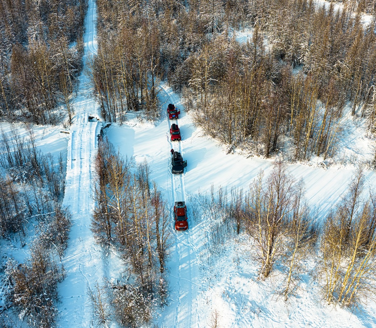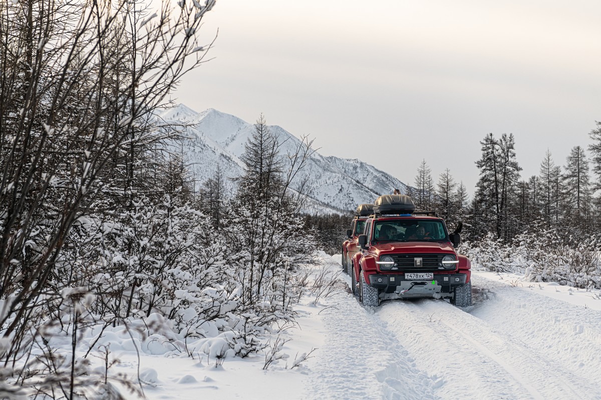 Впереди по плану 200+ километров заброшенной и заснеженной дороги, но машинки подготовлены, топливо в канистрах и запасных баках, еда и питьё по сусекам, спутниковые телефоны заряжены, дурь в голове по полной программе. Поехали!