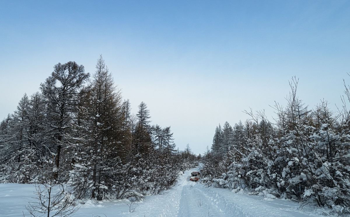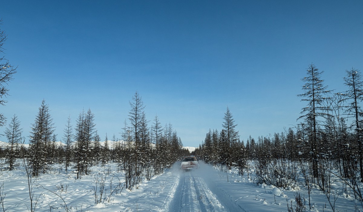 В этом году такие морозы здесь были только в декабре-январе, а февраль выпал каким-то аномально тёплым. Даже не побоюсь такого слова — жаркий был в Якутии февраль! Если термометр здесь в такое время года показывает смешные -20°C, то это действительно жара! Лишь пару раз рано утром уровень термометра уползал за -40°C, но почти сразу теплело до -30°C и выше. Доходило до того, что значительную часть пути я ехал не в тёплых штанах, а просто в джинсах. С термобельём, конечно, но в джинсах! Унты надел всего один раз — когда ночевали в машинах на льду реки Колыма, наслаждались видами северного сияния и полного лунного затмения.