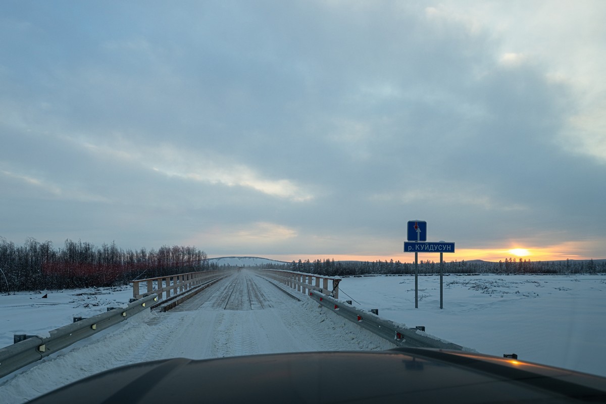 Кстати, дорогу начали строить в 1931 году. А в самой северной точке (посёлок Усть-Нера) работы завершились аж в 1953 году! В условиях запредельных холодов зимой, жары летом, по вечной мерзлоте и по безлюдным пространствам.
