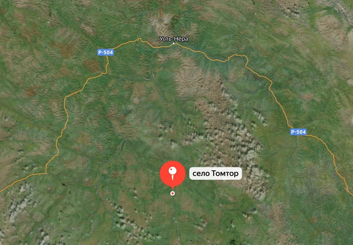 Где же находится этот участок Старой колымской трассы? Вот здесь на яндокартах, село Томтор расположено чуть западней середины участка.