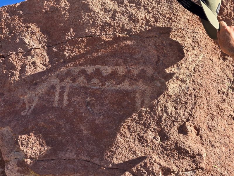 Также по планам маршрута — близлежащие петроглифы (картинки на скалах) в местности «Yerbas Buenas». Честно признаюсь, подобные многодревние граффити никогда мне «не заходили», но для полноты описания нашего путешествия — докладываю. Мы здесь были: