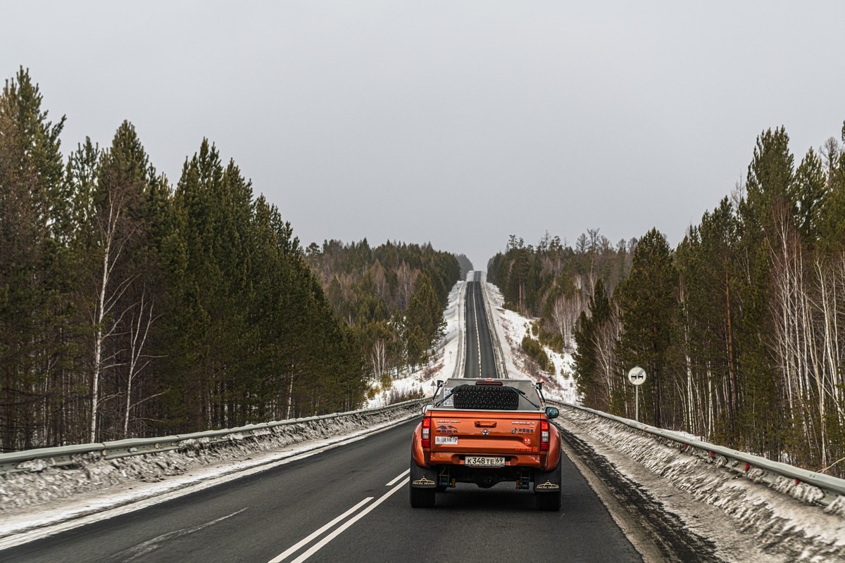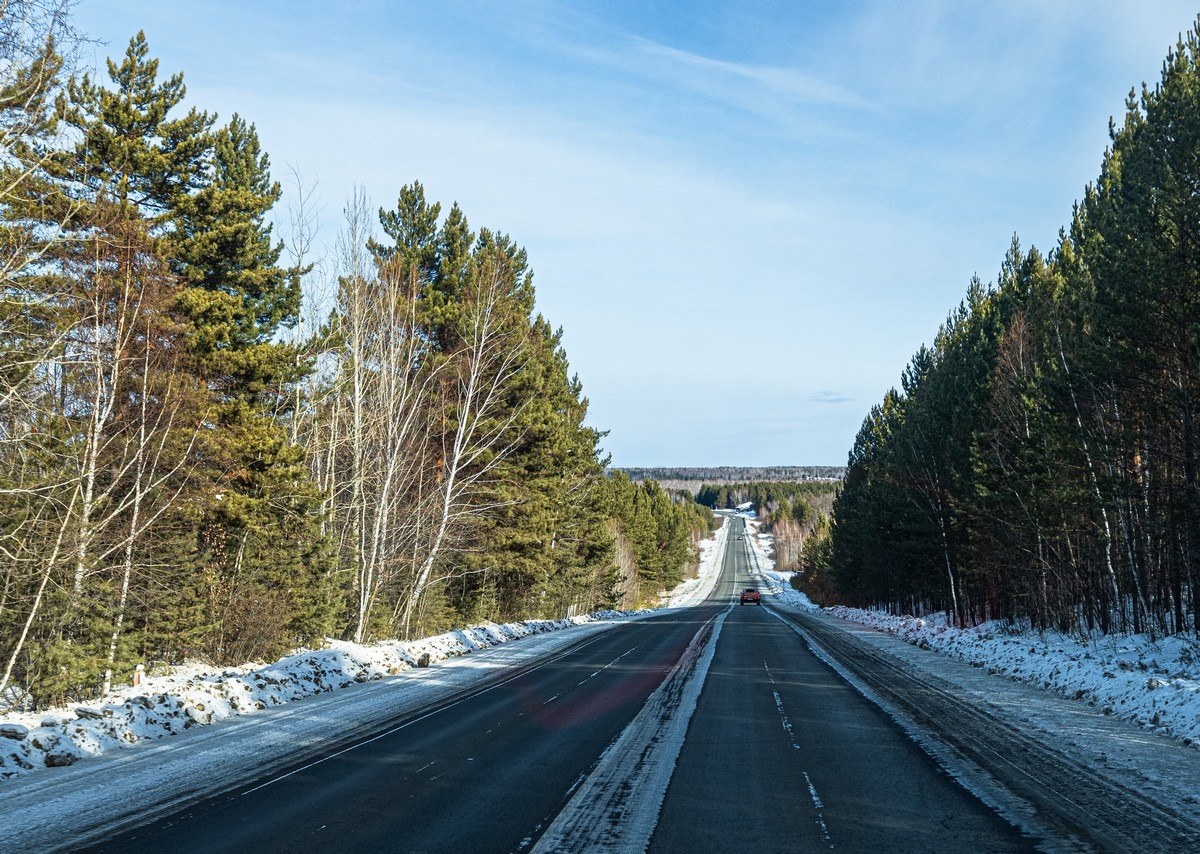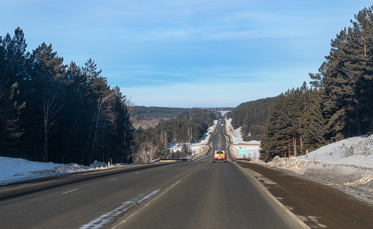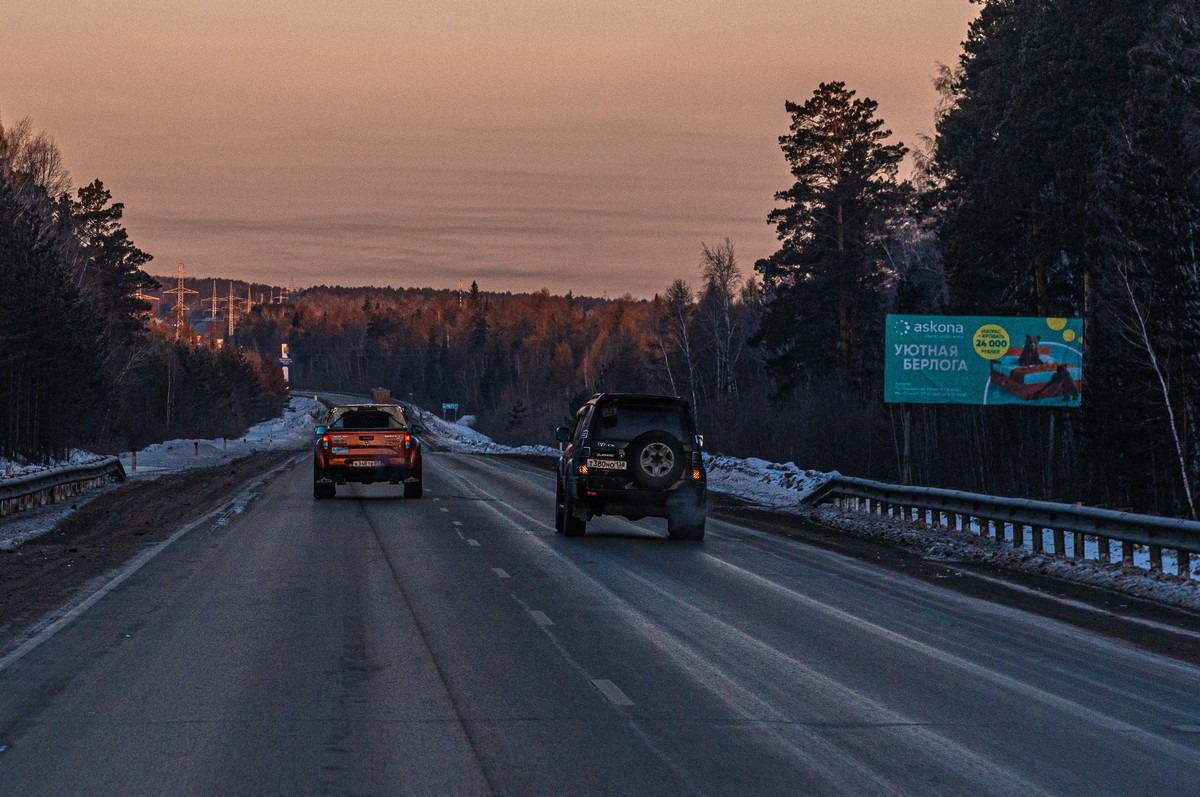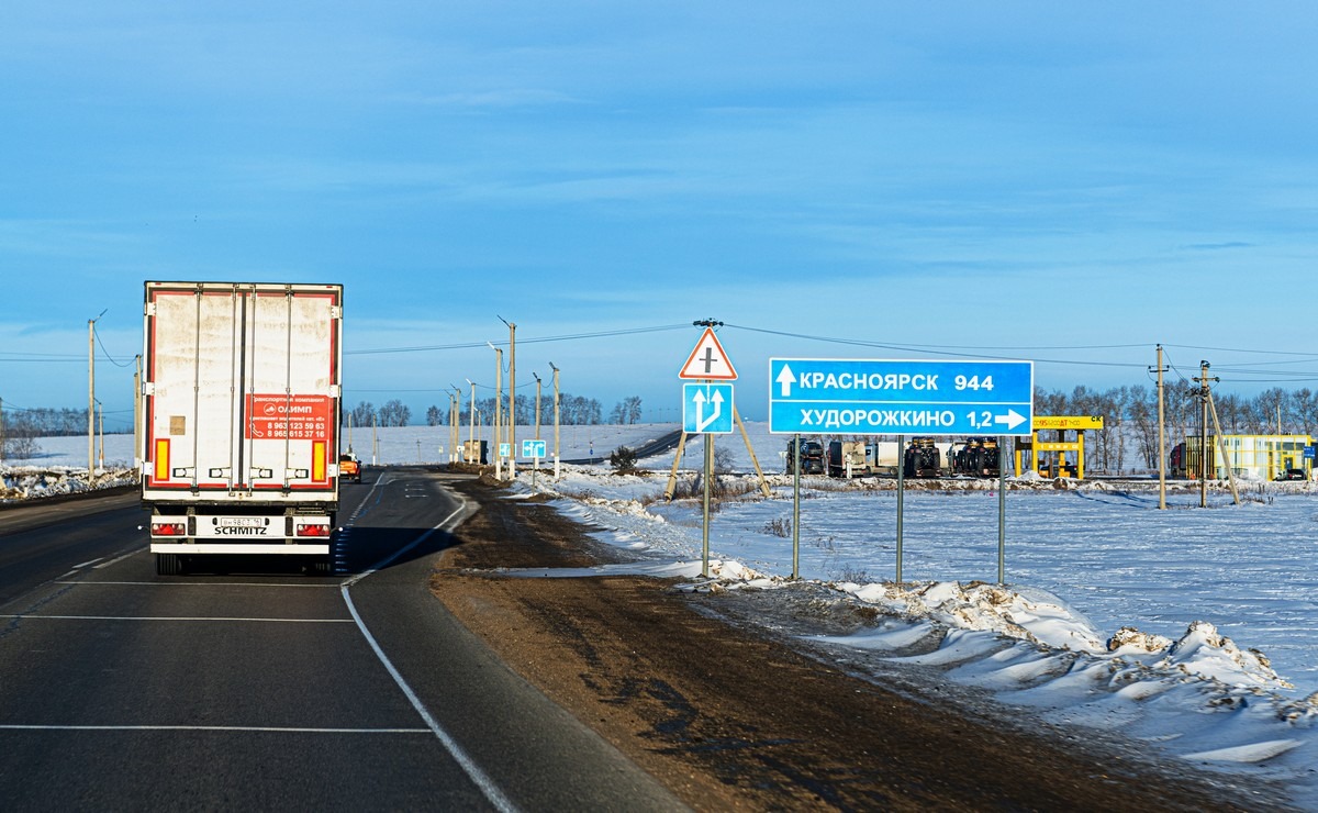 Примерно 60 км хорошей четырёхполосной скоростной дороги в сторону Красноярска, но потом снова две полосы. Эх, по нашим бесконечным пространствам дороги ещё строить и строить…