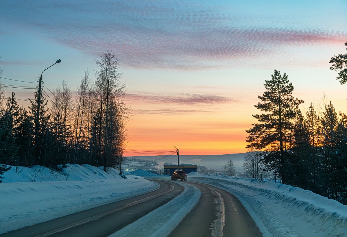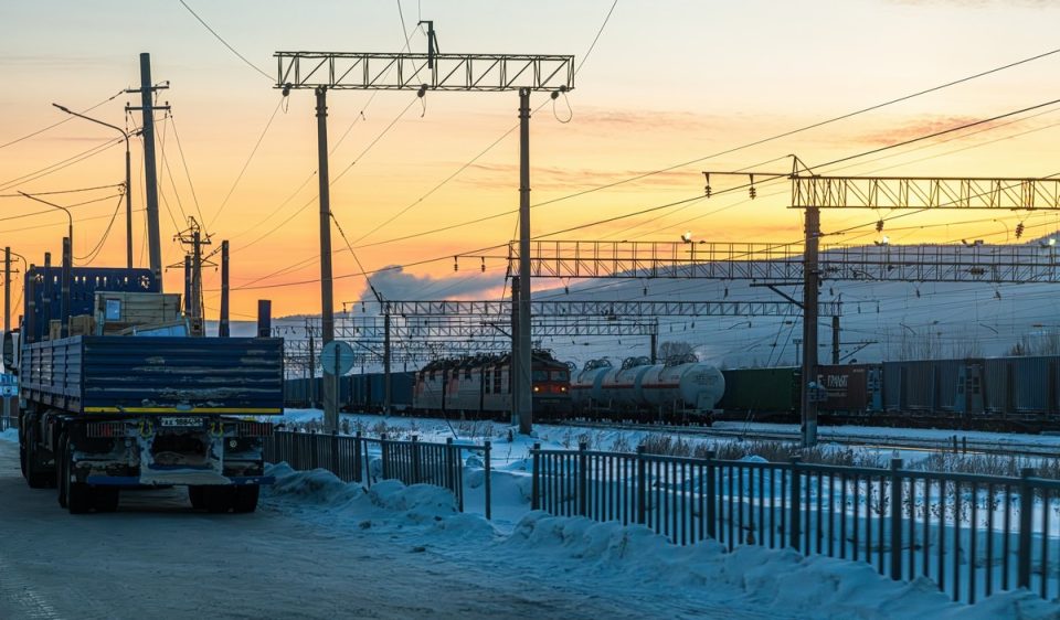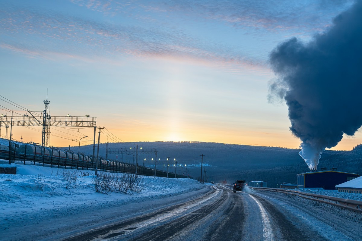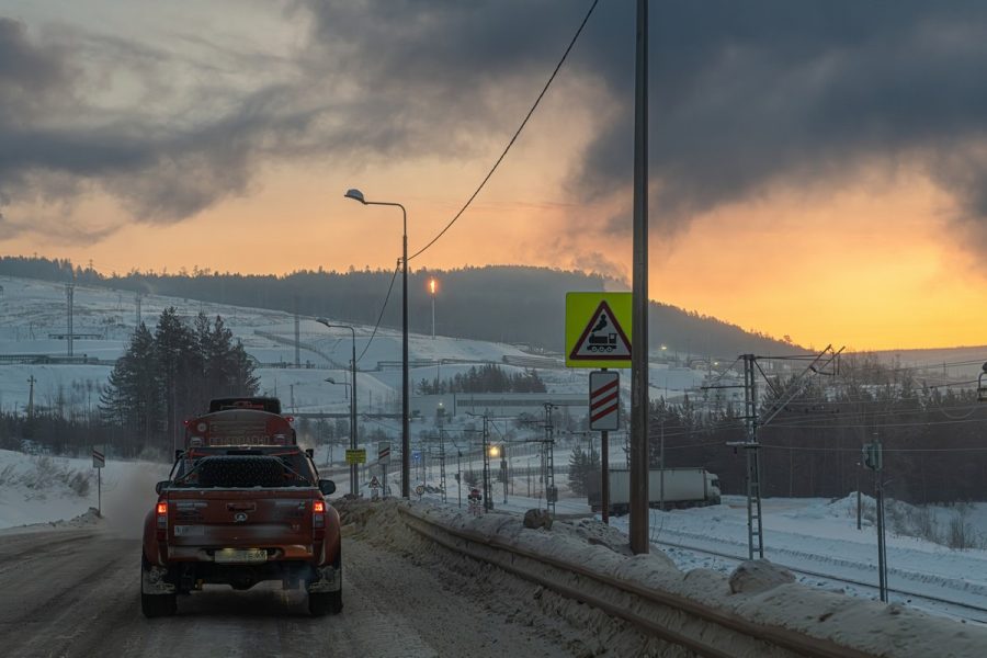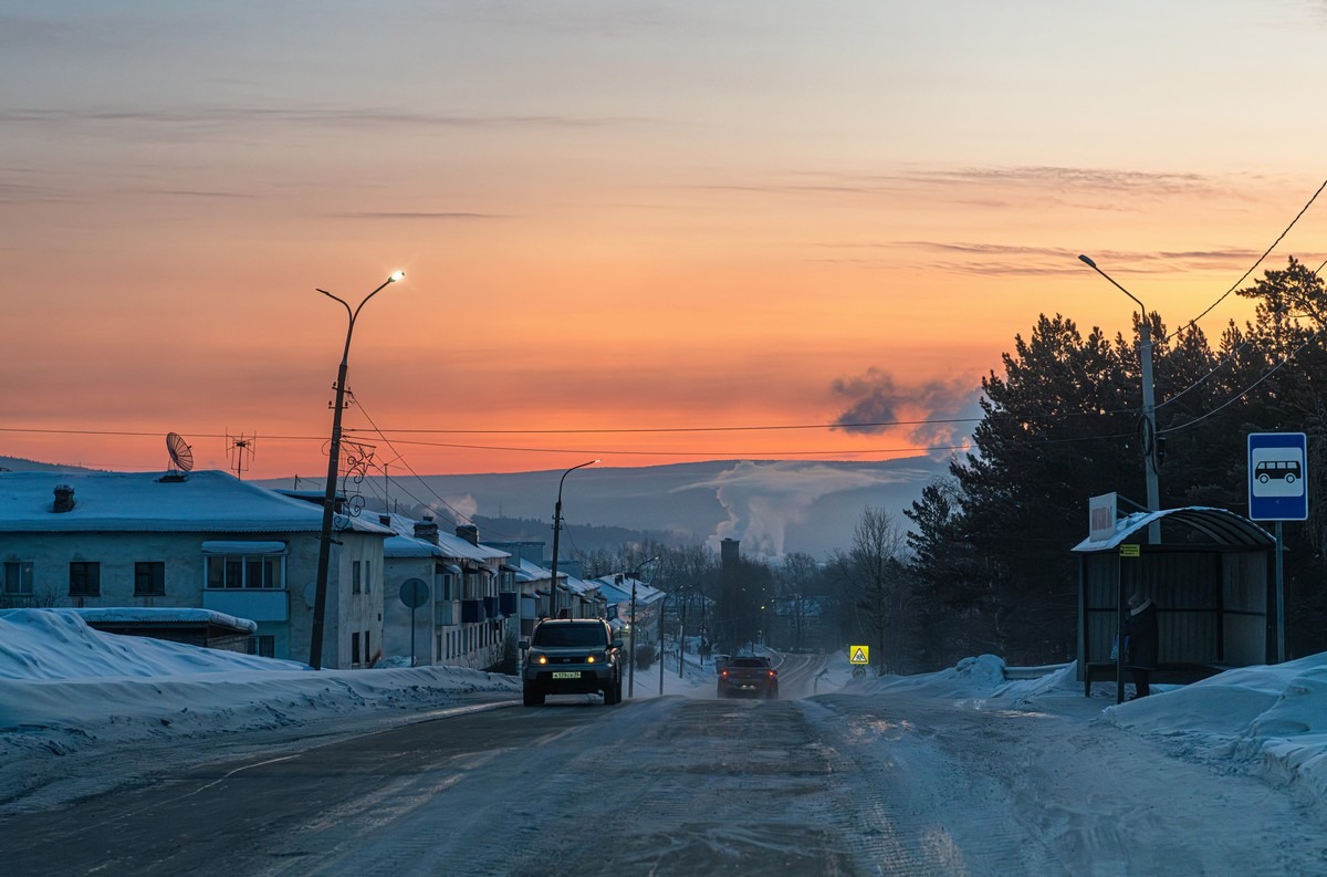Иркутская область, примерно в 250 км севернее озера Байкал. Раннее утро в Усть-Куте, собираемся выходить на зимник длиной 830+ километров, там будет интересно. Но для начала просто немного колоритно-атмосферных фоток от Д.З. Ведь я же был за рулём, а фотки в студию практически все от мастера Д.З. — и вот такой был утренний рассветный Усть-Кут: