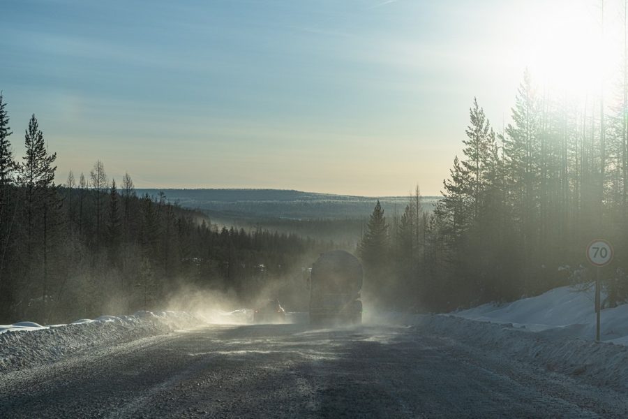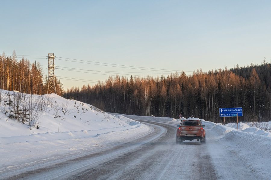 Дальше — автозимник. Та самая дорога, которая работает только два-три месяца в году. Которую обслуживают дорожные службы, но строит её «компания Мороз-Дорстрой». И расстояния здесь огромные…
