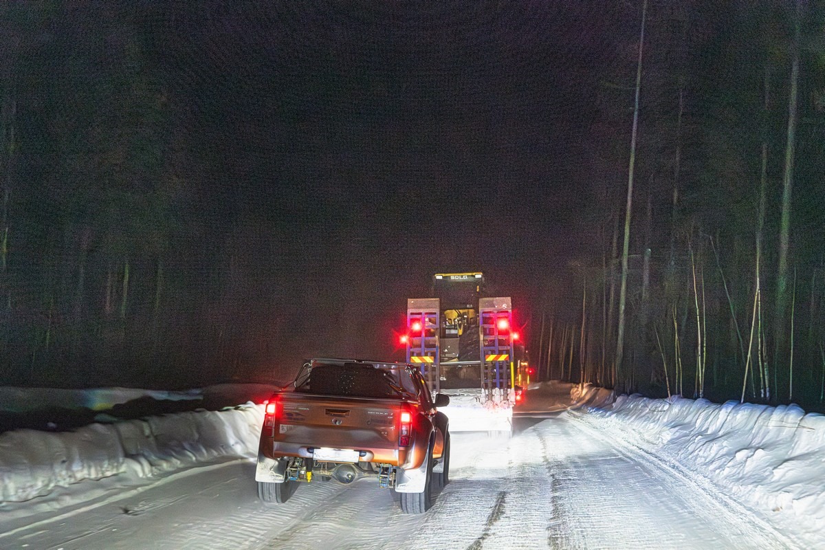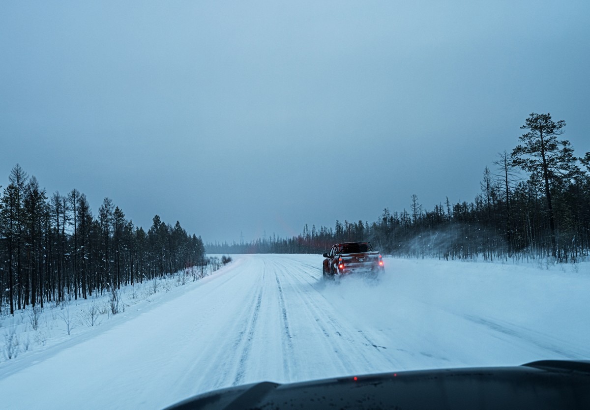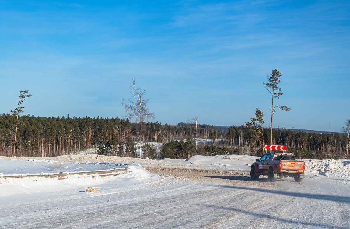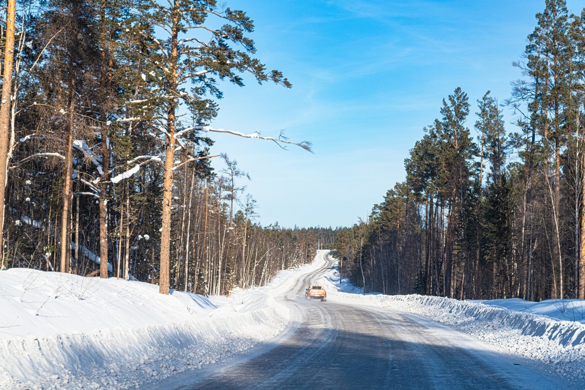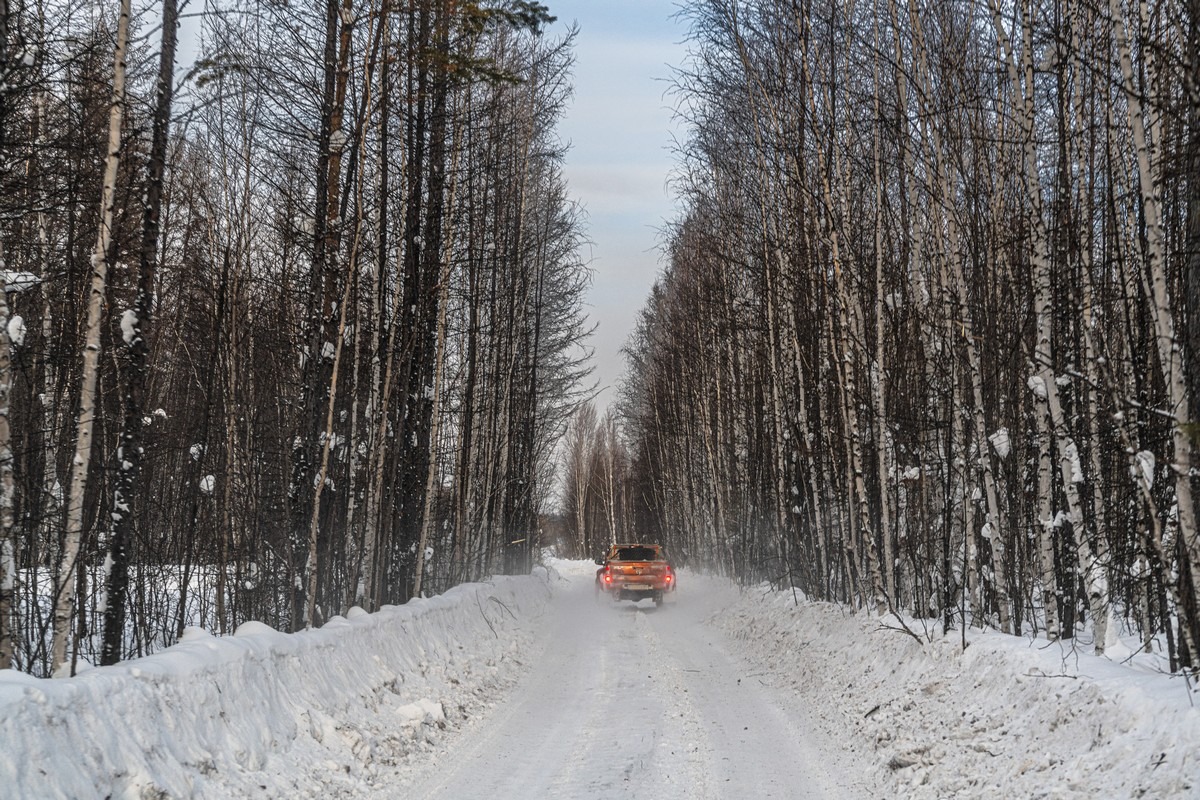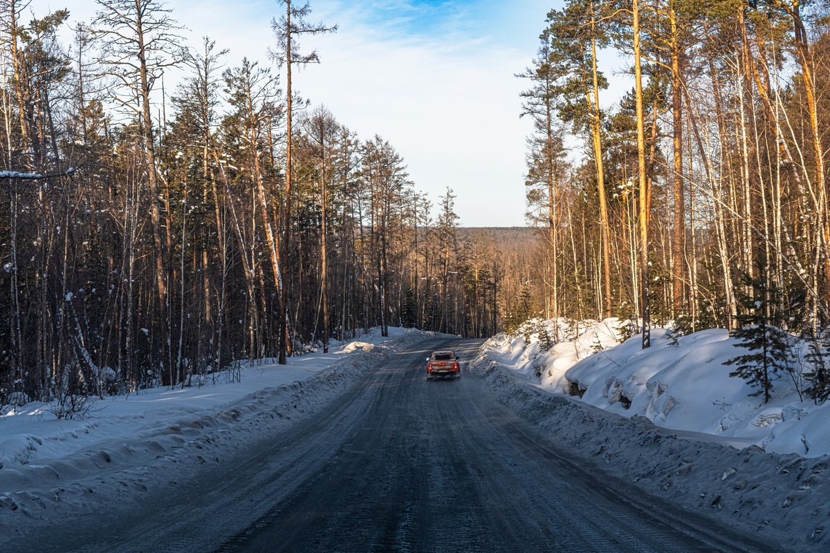 Постановочный, но зачётный кадр — мы едем по зимнику: