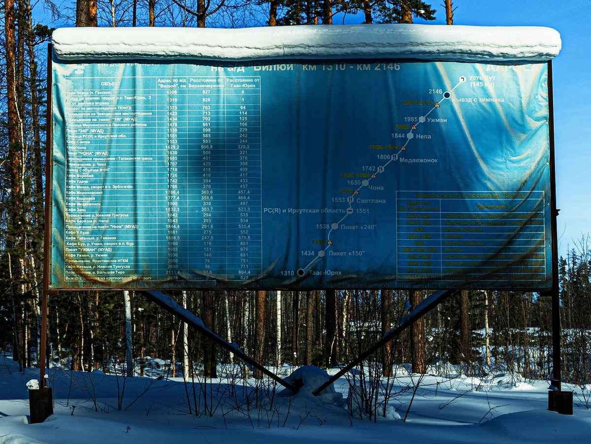 Буквально через 4 км от места ночёвки (это был пикет «Сибирь») — граница между Иркутской областью и Якутией: