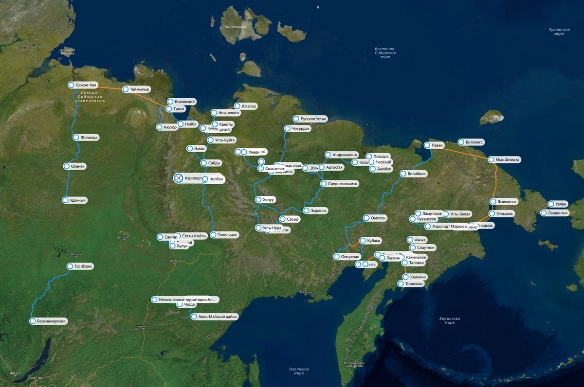 Кстати, удивительно, но в интернетах отсутствуют какие-то либо общие карты дальневосточных зимников. Кусочки встречаются, а вот чтобы целиком и актуально — такого нет! Непорядок. Надо исправить ситуацию… исправлено! Вот, смотрите! Больше нигде! ->>> Вот карта дальневосточных (+Иркутская область) зимников. Синими линиями обозначены ежегодные регулярные зимники, оранжевыми — нерегулярные или официально не обслуживаемые. Большинство зимников проложены по трекам или по яндокартам, некоторые же — просто прямыми линиями, поскольку год за годом меняют свой маршрут.