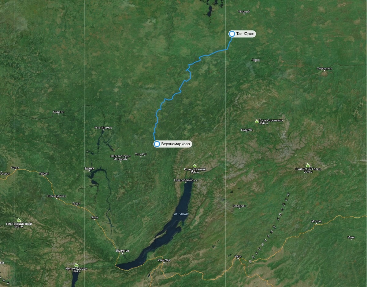 Мы же идём по зимнику Тас-Юрях — Верхнемарково (в обратном направлении):