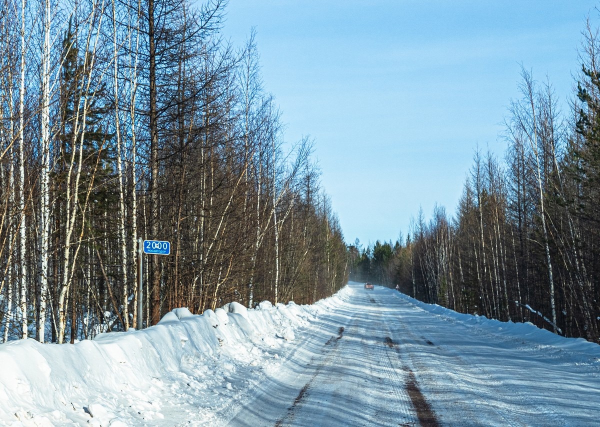О! Знак 2000 км — вот столько нам осталось до Якутска :)