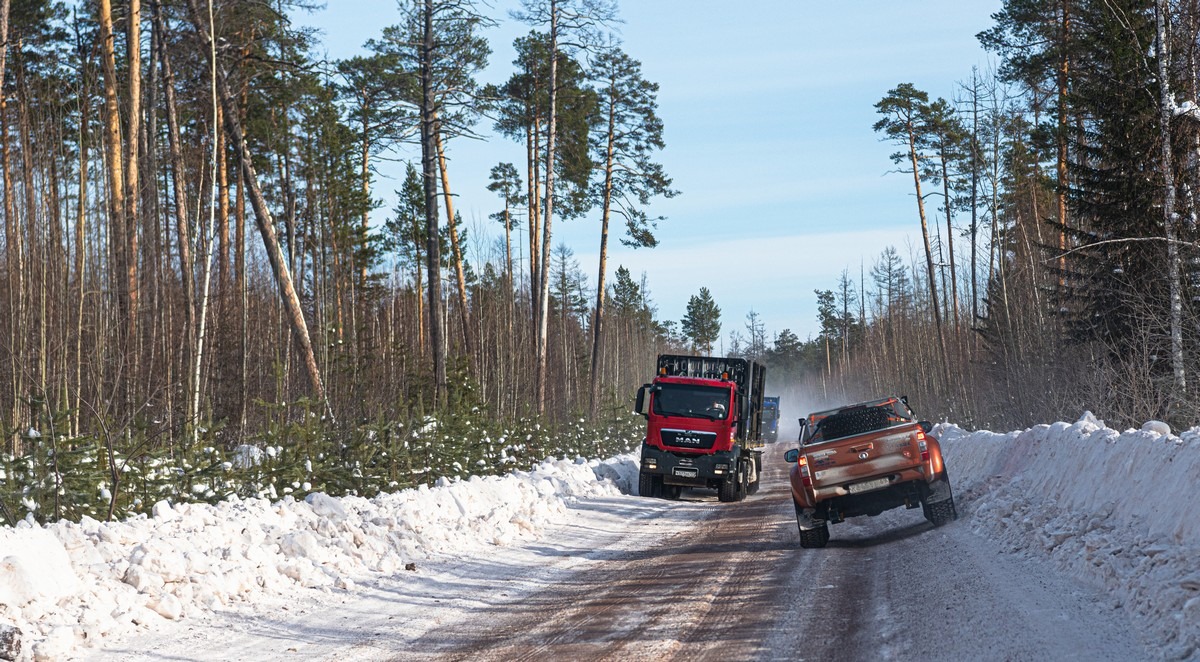 В любом случае — мы здесь гости. Зимник для грузового транспорта сделан, а не для нас, «маленьких». Посему при разъездах мы максимально уступаем дорогу встречным машинам: