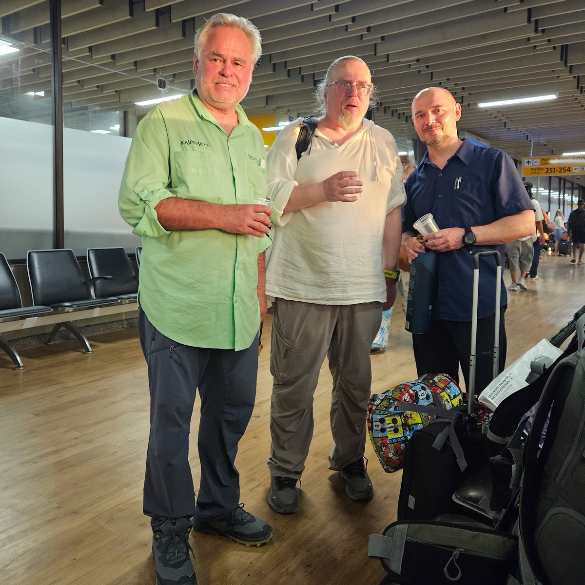 Получили багаж, идём через контроль — никого нет, мы никому не интересны. Это даже лучше — пойдём сдадим наши баулы обратно.