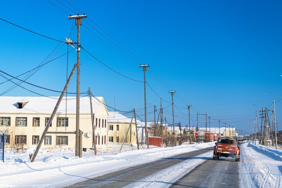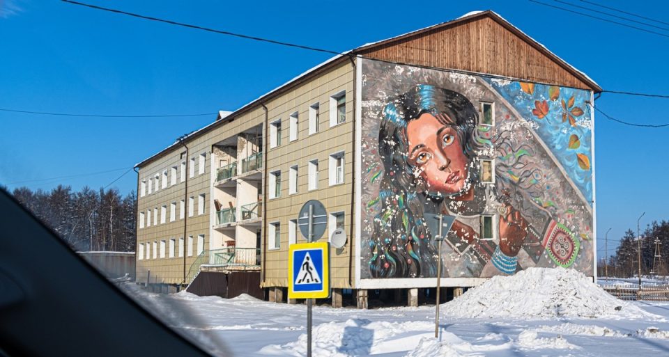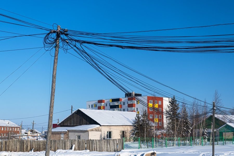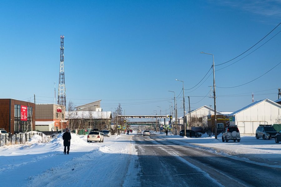 Свернули пообедать в посёлок Нюрба, это очень далеко — вон там на картах. Как выглядят весьма удалённые (но всё же на проездной дороге) якутские посёлки? А вот так:
