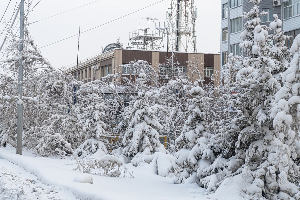 В городе не по сезону тепло, около -30°С, но следы недавних морозов всё ещё присутствуют: