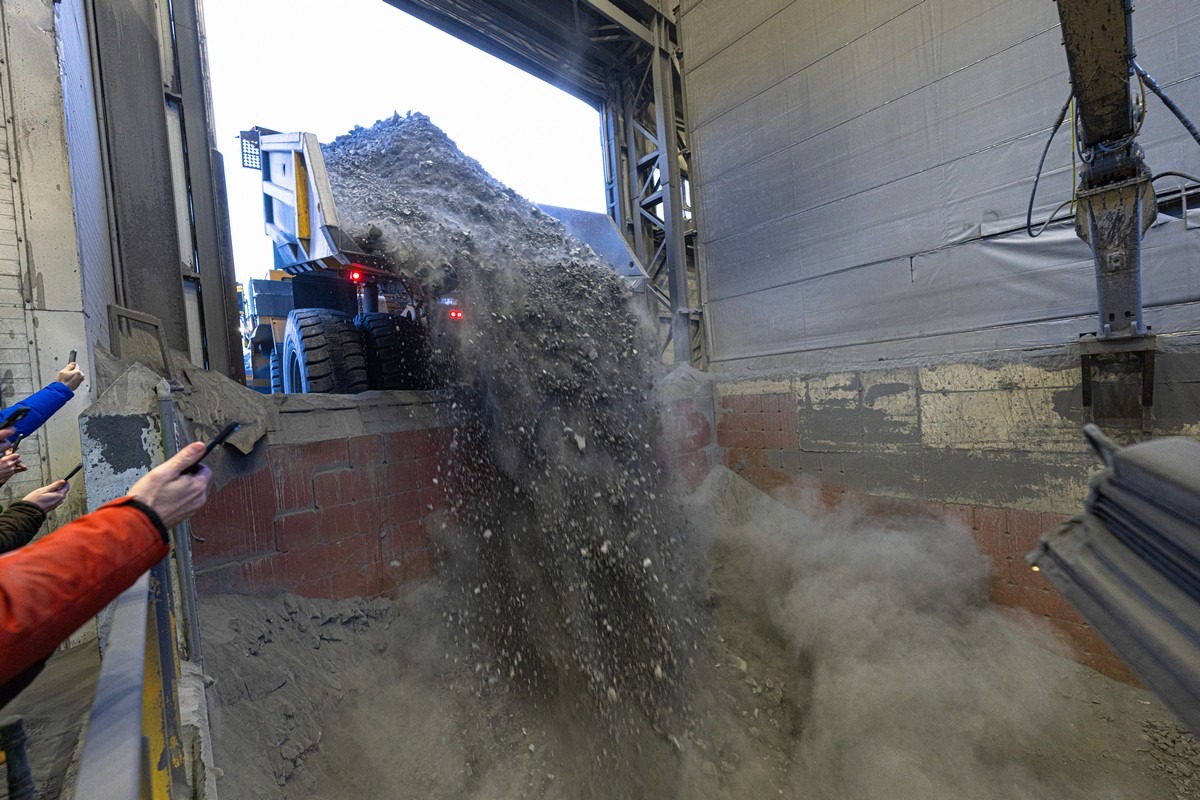 Что интересно: на боку самосвала высвечивается, сколько тонн породы он везёт. Автоматика и цифровизация, однако!